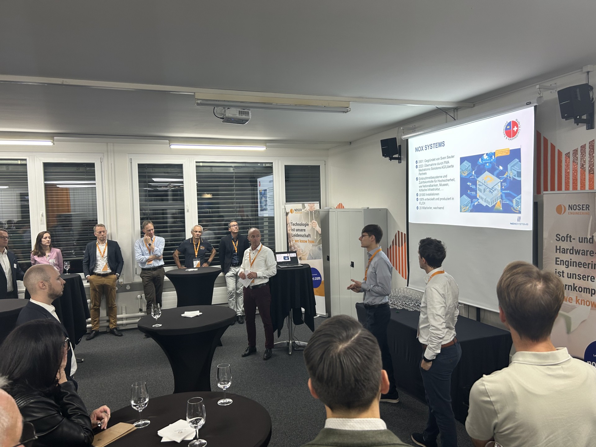 65 Entscheidungsträgerinnen und Entscheidungsträger aus Wirtschaft, Technologie und Verwaltung aus dem Rheintal nahmen am 13. November beim ersten Rheintal Innovation MeetUp in der Filiale von Noser Engineering in Bad Ragaz teil.