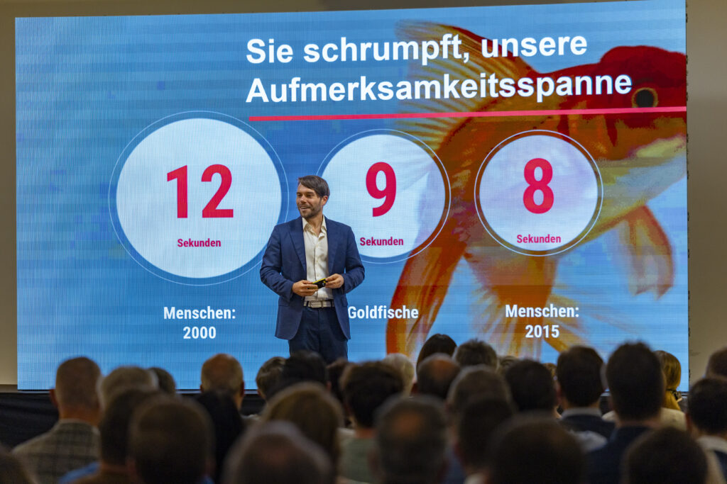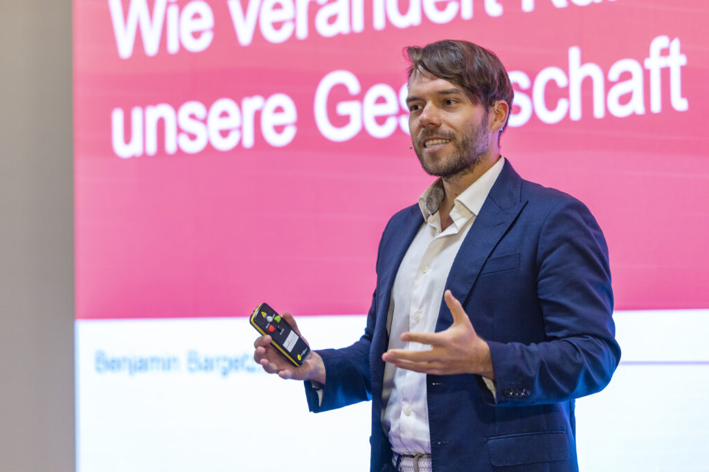 Die Keynote von Benjamin B. Bargetzi führte eindrucksvoll vor Augen, wie eng Wahrnehmung, Verhalten und Technologie miteinander verbunden sind. Der Neurowissenschaftler, KI-Experte, Psychologe und Philosoph zeigte auf, wie KI unser Denken und Entscheiden beeinflusst und wie eine verantwortungsvolle Nutzung neuer Technologien gelingen kann. Bargetzi studierte und forschte in Oxford, London, Singapur und Zürich, arbeitete für Google, Amazon und das World Economic Forum und leitet heute eine Schweizer Softwarefirma für KI-Lösungen.