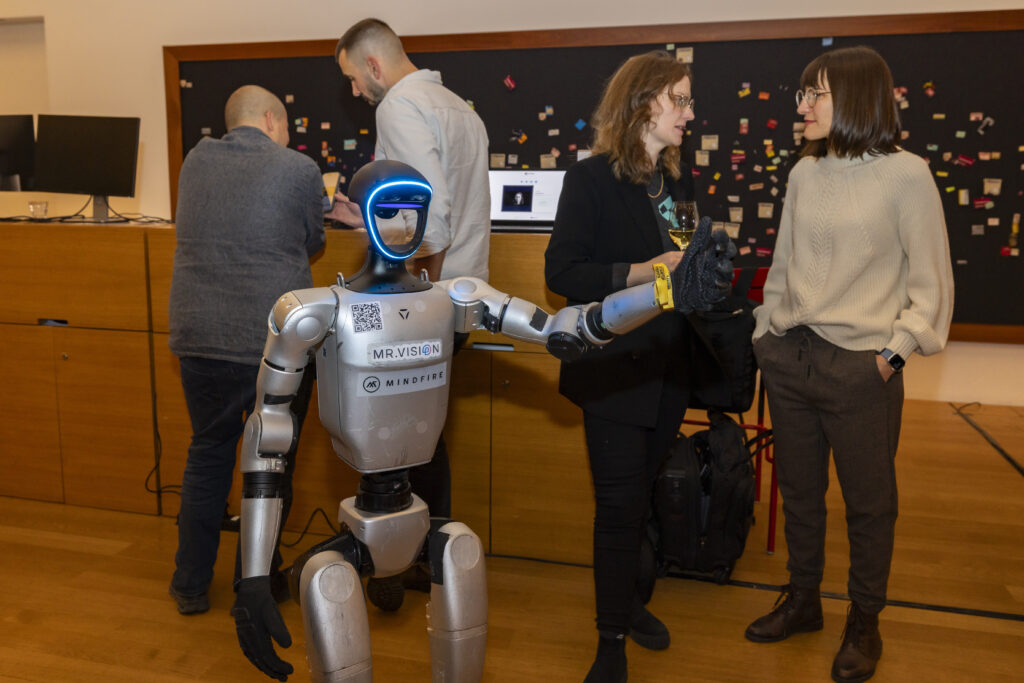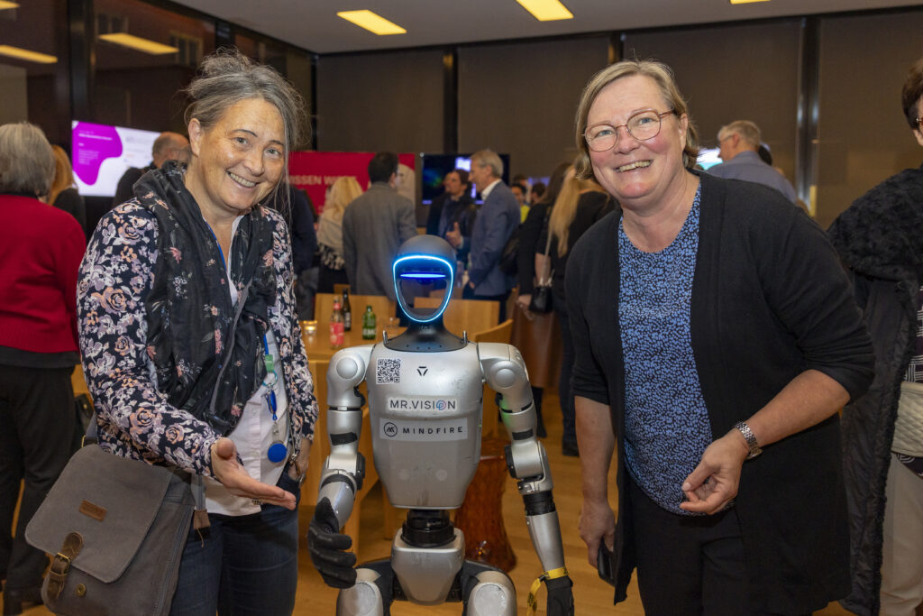 OST – die Schweizer Fachhochschule präsentierte mit VIRAS einen autonomen Einkaufswagen, der sehbehinderten Menschen das Navigieren im Laden und das Erkennen von Produkten erleichtert und künftig auch älteren Menschen Unterstützung bieten könnte. THAL KI zeigte anhand lernfähiger Roboter, wie moderne Robotik funktioniert und welche Anwendungen im Bereich autonomer Systeme entstehen. Digihub.li stellte zwei digitale Tools vor, die persönliche Werte sichtbar machen und Unternehmen mit Echtzeitanalysen zu Kultur und Zufriedenheit unterstützen.